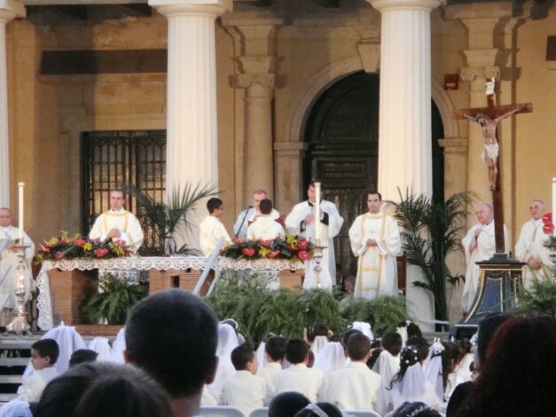 The Archbishop’s Curia organised a ceremony to celebrate the centenary of the historic Eucharistic Congress which was held in Malta in the year 1913. A Solemn Mass was celebrated in St George’s Square, Valletta, led by the Bishops of Malta and Gozo. The Association was invited and honoured to participate in this event, as well as in the short Eucharistic Procession.
