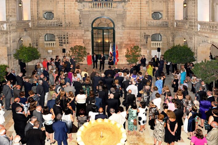 Maltese Association was honoured by the distinguished patronage of the Prime Minister, the Hon. Dr Joseph Muscat, who attended the Concert with Mrs Michelle Muscat, and who very generously hosted all the guests in the quaint and beautifully lit courtyard of the Auberge de Castille for an after Concert reception.