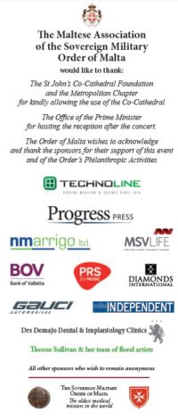 The annual concert is held to mark the Feast Day of St John the Baptist, Patron Saint of the Sovereign Military Order of Malta. This years event also celebrated the 900th Anniversary of the recognition of our Order by Pope Paschal II in 1113, following the formal festivities held in Rome last February