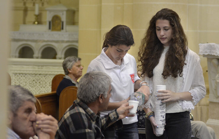 Mass was celebrated by the Auxiliary Bishop Mgr Charles Scicluna Conventual, Chaplain Grand Cross, the Principal Chaplain of Maltese Association SMOM Mgr Lawrence Gatt, Canon Carmel Busuttil, Fr David Gauci, Fr Marcel Portelli missionary in Peru and other priests who participated in the SMOM Lourdes Pilgrimage including Canon Joseph Sultana and Fr George Vella. The Laudate Pueri Choir led by Canon George Frendo and Fr Joseph Mercieca also sang during Holy Mass.