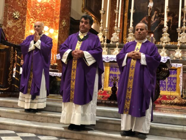 Various Members of the Maltese Association of the Order of Malta led by Vice President Major Ray Miller responded to the traditional invitation extended to them by Archpriest Canon Karm Busuttil and the Collegiate Chapter of St. Lawrence Collegiate Church in Birgu to join in the liturgical celebration of Ash Wednesday, marking the commencement of Lent.