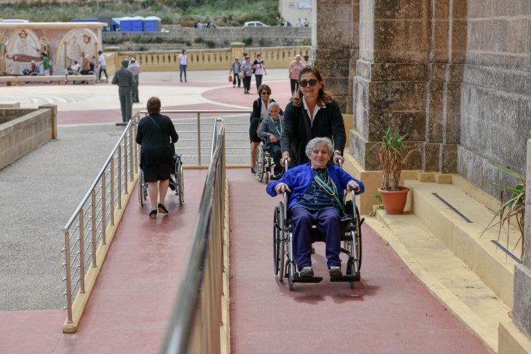 Over 120 special guests, hailing from St. Vincent de Paule Residential Home for the Elderly, Mount Carmel Hospital, Sir Paul Boffa Hospital and Dar tal-Providenza in Malta as well as from Dar l-Arka Respite Centre and the Gozo General Hospital in Gozo, along with a number of their carers, were invited to participate in this year’s pilgrimage which was an extra special one, as it happened to mark the 30th anniversary of this important annual calendar event.