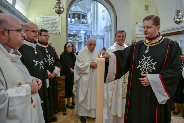In fact after the blessing, the Members of the Association still in their Church robes along with the Members of the Clergy processed to the inner Chapel housing the venerated painting depicting the Assumption of Our Blessed Lady, accomplished by Maltese artist Amadeo Perugino way back in 1619. In that most holy inner sanctum a candle emblazoned with the Emblem of the Order was most venerably presented to Our Lady of Ta’ Pinu by the President of the Association, in the presence of His Grace the Bishop of Gozo. This was a new feature inserted into the liturgical programme by the organising committee, which most fittingly crowned the liturgical programme especially on the occasion of this anniversary edition.