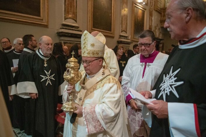 On the occasion of the feast of St John the Baptist, the Patron Saint of our Order, Pontifical High Mass was celebrated by His Grace the Metropolitan Archbishop of Malta, Mgr. Charles J. Scicluna, assisted by other members of the clergy, at St John’s Co-Cathedral on the 24 June at 6.00 p.m.