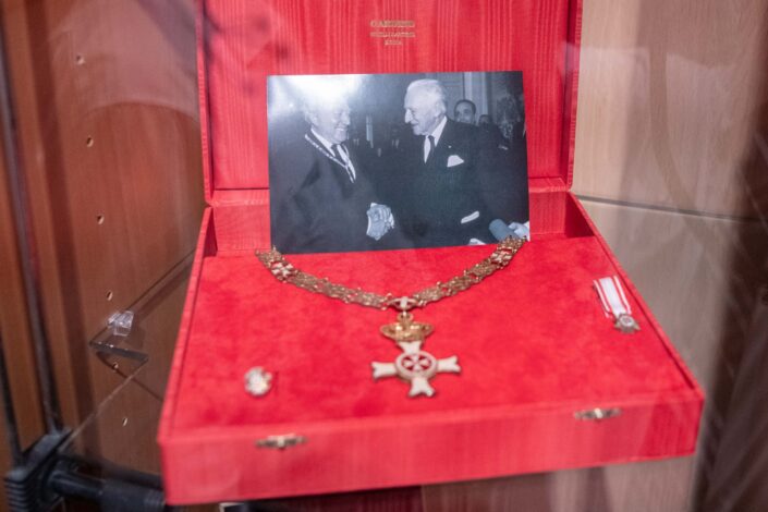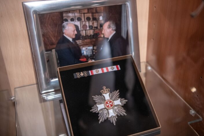 Mrs. Violet de Marco and her family expressed the desire that the Church Robes, collar and decorations of the Order of Malta and the Order pro Merito Melitensi of the late lamented President Emeritus Prof. Guido de Marco KM are to be included in the permanent exhibition at Casa Lanfreducci.