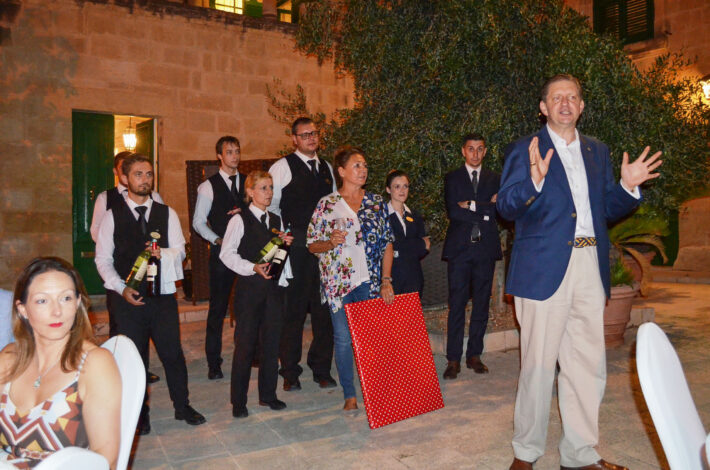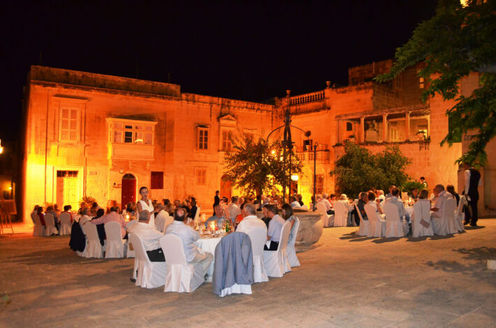 We are very grateful to our confreres Joe and Justin Zammit Tabona, and The Xara Palace Relais & Chateaux for providing all the tables, chairs, glassware, crockery, cutlery and helping with the logistics and staff on the night. Thanks also go to our confrere Peter Sant Manduca and the Mdina Local Council for their kind permission to hold the event in one of Mdina’s most charming squares, NM Arrigo for supplying the delicious wine, and to Ernst and Daria von Weyhausen for allowing us to use their home for all the prep work.