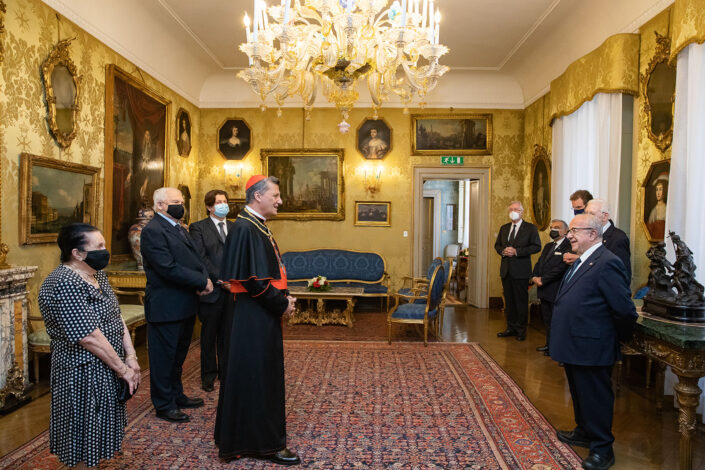 The Lieutenant of the Grand Master, Fra’ Marco Luzzago, received His Eminence Mario Cardinal Grech, Secretary General of the Synod of Bishops, this morning at the Magistral Palace.In expressing his sentiments of profound esteem and gratitude for the Cardinal’s closeness to the Order of Malta’s Grand Magistry, Fra’ Marco Luzzago recalled that ‘during the long months of healthcare emergency, you made us reflect on how these tragic circumstances should also help us to rethink our lifestyle, the meaning of existence, the organisation of society and relationships. Relationships which, throughout your priestly and pastoral journey – with the numerous offices you have held in many countries of the world – Your Most Reverend Eminence has been able to cultivate by standing beside people, something very dear to you. The Order of Malta not only shares this view but wants to pursue it with ever renewed vigour’.The meeting was attended by the Grand Commander, the Grand Chancellor and some members of the Sovereign Council.His Eminence Mario Cardinal Grech was admitted to the Order of Malta in 2006. In 2020 he was raised to the rank of Bailiff Grand Cross of Honour and Devotion.