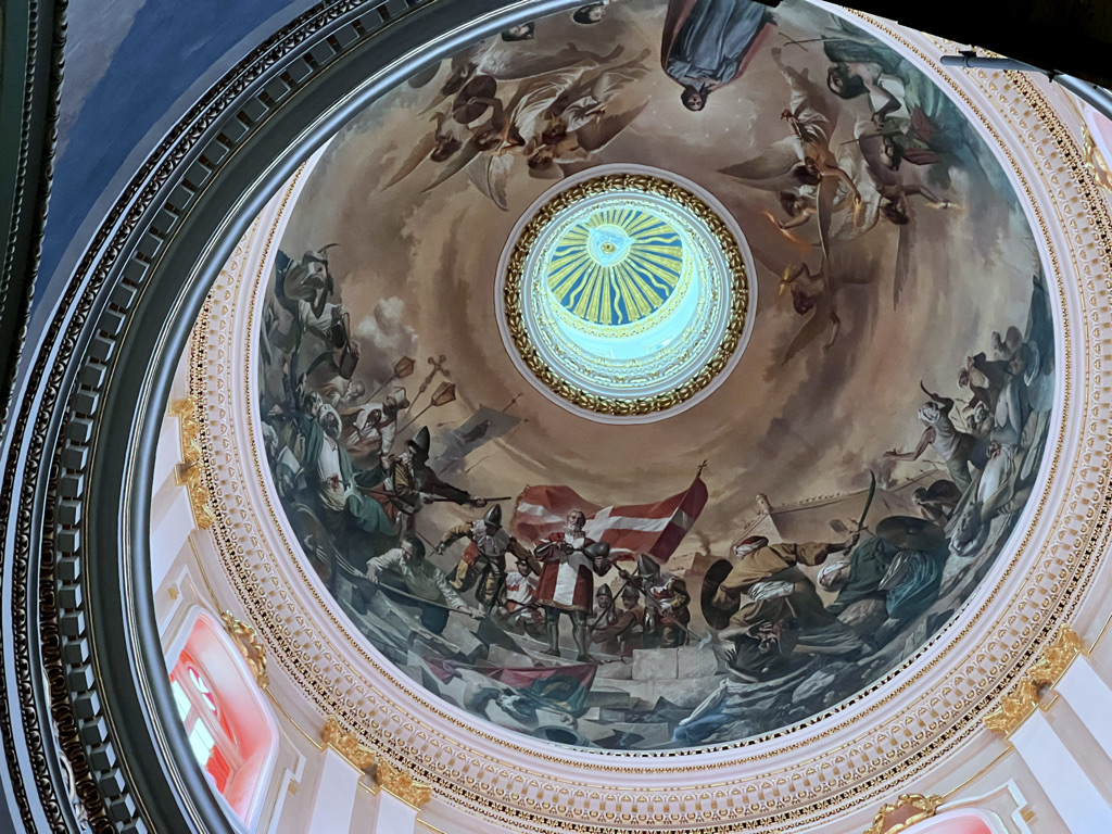 Canon Karm Busuttil personally sponsored the restoration of the painting in the interior of the church dome to its former glory. The dome had been extensively damaged during the war.