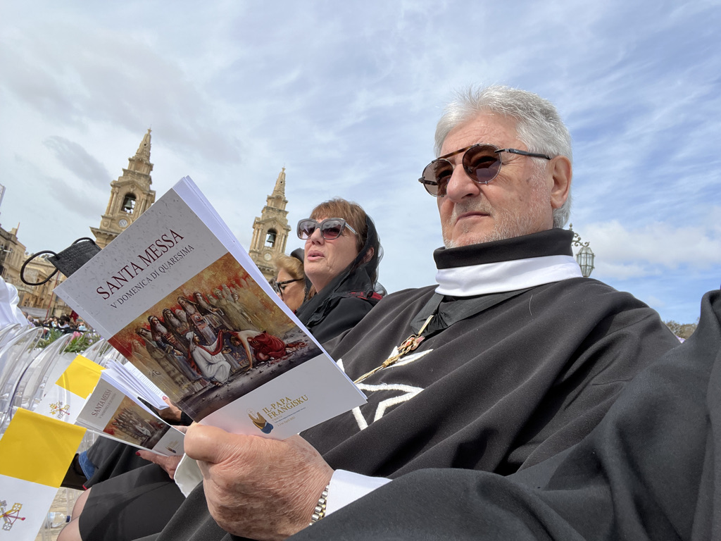 The Council of the Maltese Association, together with Fra’ John Critien and Fra’ Francis Vassallo, were invited by the HG Charles Jude Scicluna, Archbishop of Malta, to participate in the Mass celebrated by His Holiness Pope Francis, at the Granaries in Floriana at 10.15 AM. The Maltese Lieutenancy of the Order of the Holy Sepulchre was also invited.