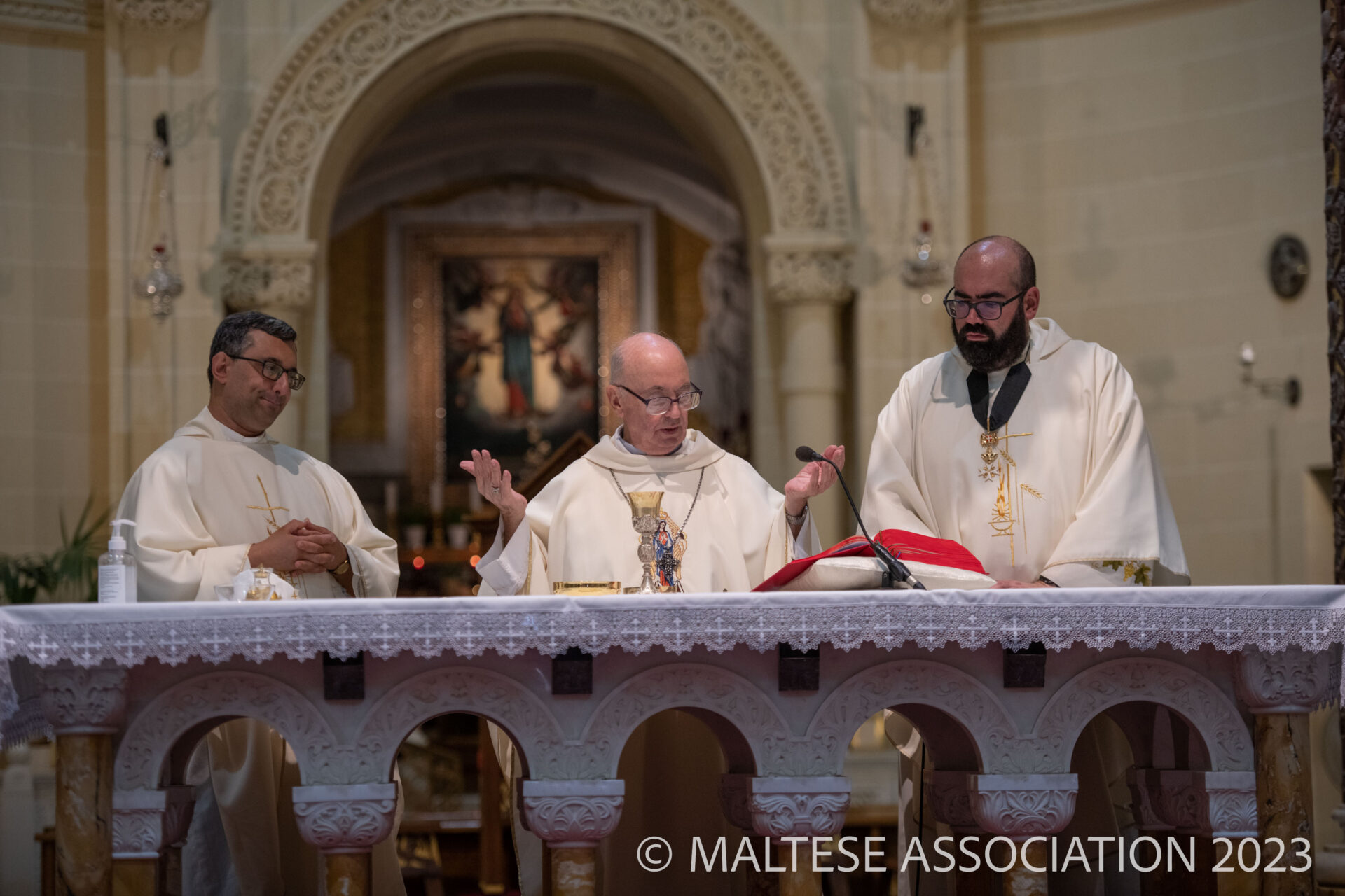 The Reading was delivered by our confrere and President of the Order of Malta Volunteers in Gozo Chris Galea, whilst the Hospitaller Dr. Kevin Dingli who directed the Pilgrimage read the bidding prayers. The offerings were taken up to the altar by representatives of CISOM, VOTO and the Canine SAR Team.