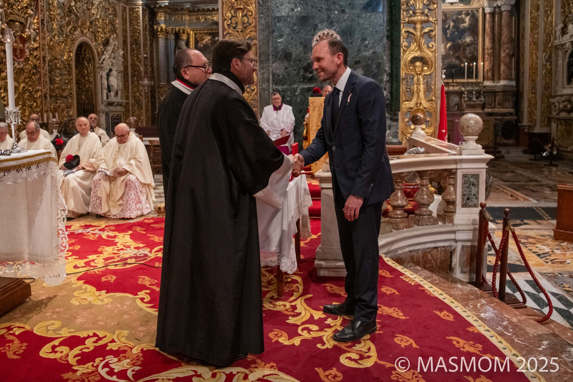 Reverend Monsignor Paul C Vella, Rector of Saint John’s, and a Conventual Chaplain, proceeded to celebrate a solemn High Mass with other members of the clergy, some of whom were Conventual Chaplains themselves. Joseph Zammit Tabona, read the First Reading followed by Professor Joseph Pace for the Second Reading. Bidding prayers were read by Arthur Galea Salamone. The Principal Chaplain of the Association, the Reverend Monsignor Brendan Gatt, delivered a brief homily highlighting the relevance of the life of Saint John the Baptist in the world of today and its importance for the spiritual guidance of the Members of the Order.