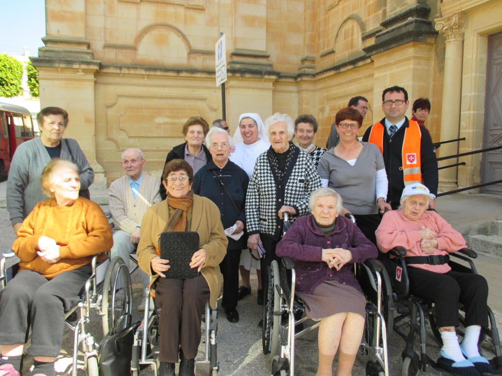 In the morning, the elderly residents of St Dominic’s Home in Victoria, were taken out for a Pilgrimage to the Sanctuary of St Joseph in Qala. The elderly were conveyed in the Order of Malta ambulift vehicle while members from the Catholic Action also provided a light car to convey walking patients. Coffees and drinks were served outside after the elderly attended Mass in the church.