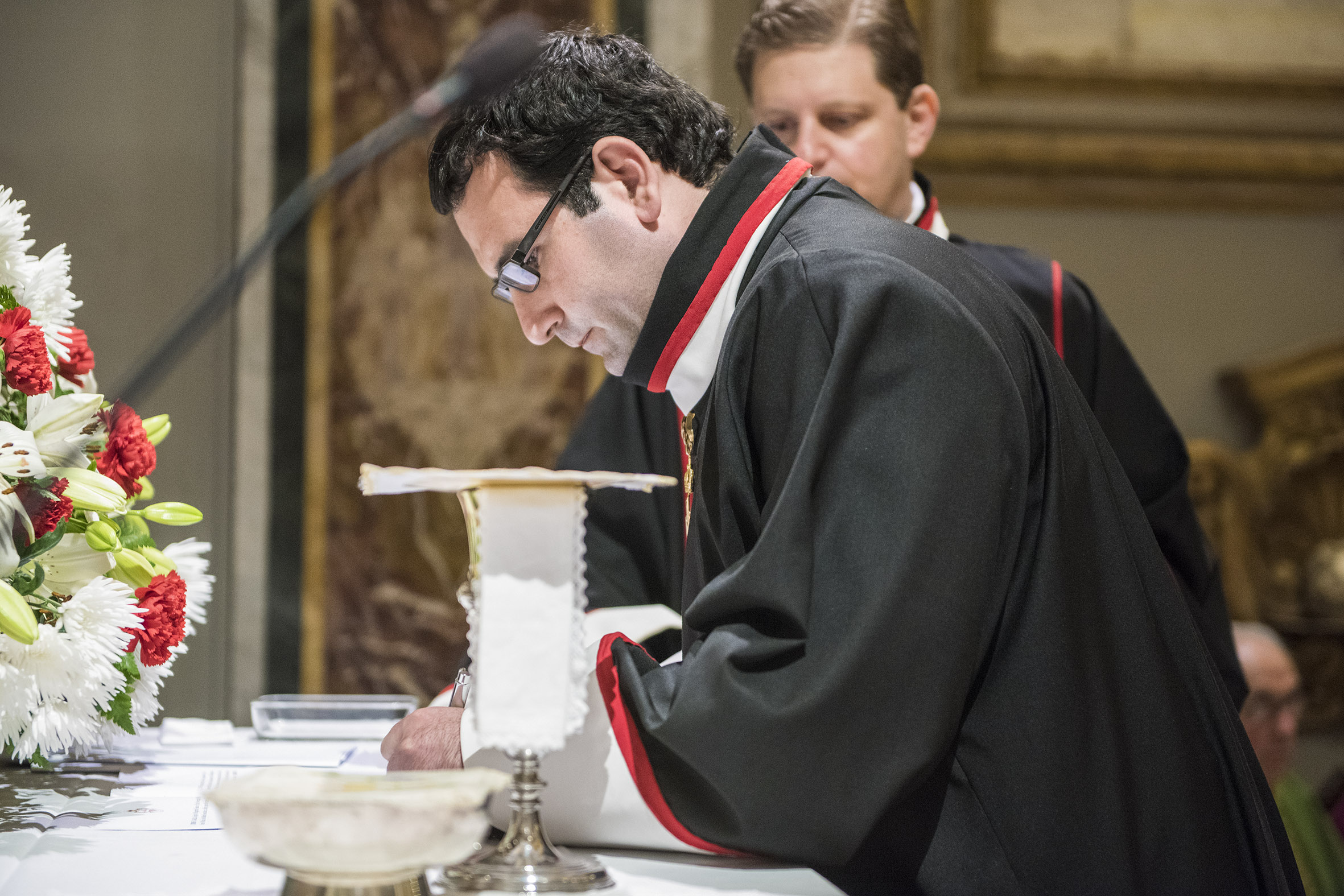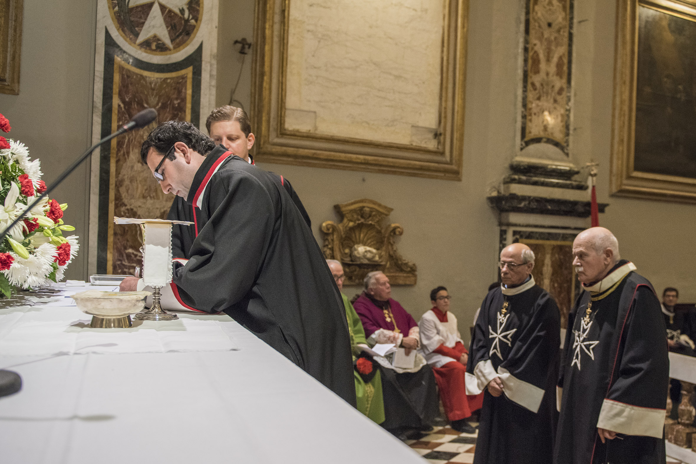 Chris Galea, the Director of the Order of Malta Volunteers in Gozo made the Promise of Obedience in front of the Superiors of the Maltese Association. This Investiture was approved by HMEH the Grand Master. It was held at the Oratory of St John’s Co-Cathedral, Valletta and it was led by Mgr Lawrence Gatt Principal Chaplain, President Philip Farrugia Randon and Chancellor Daniel de Petri Testaferrata.