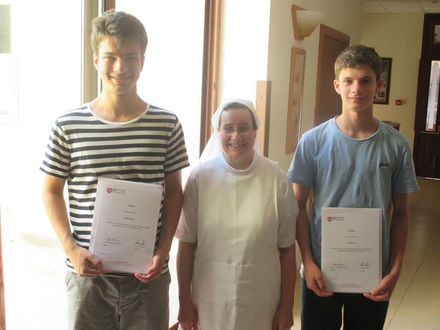 Two medical students from Britain carried out voluntary work with the Order of Malta Volunteers in Gozo. Oliver Brown and Oliver Lyle had applied with this aid organisation to carry out voluntary work in Gozo. For nearly two weeks, the two young British men worked with the elderly at St. Dominic’s Home and also helped in the transport service of the Order. Photos show the presentation of Certificates in the presence of Sister Agnes Galea Sister in Charge of the Nursing Home.